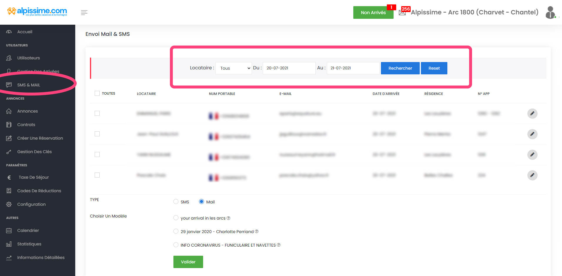 Grâce au module d’envoi de Mail / SMS, vous pouvez envoyer une communication à tous vos locataires, à vos locataires arrivés ou aux locataires qui ne sont pas encore arrivés.